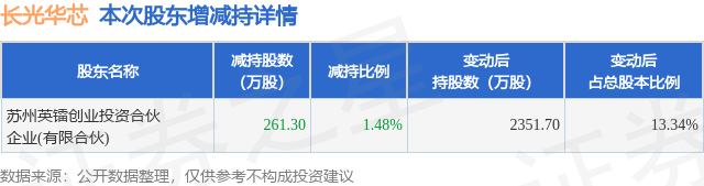 证券之星消息,11月11日长光华芯发布公告《长光华芯:股东及董事减持股份结果公告》,其股东苏州英镭创业投资合伙企业(有限合伙)于2025年11月3日至2025年11月11日间合计减持261.3万股,占公司目前总股本的1.4823%,变动期间该股股价上涨18.49%,截止11月11日收盘报85.5元。
