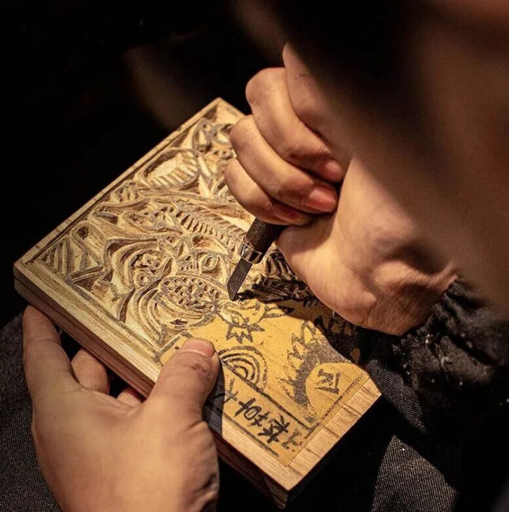 张仁华的手又宽又厚,摊开手心,上面是整整齐齐的老茧,掌心纹路里是渗进去的颜料。这双手在拿起刻刀前,是替人打针开药方的。他中专学医,毕业后开起了小诊所,要不是父亲生病,他还想不到自己会继承父亲的手艺。